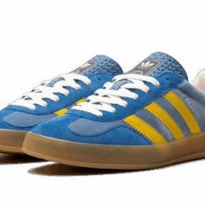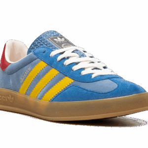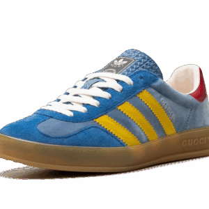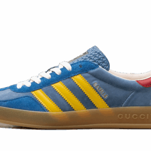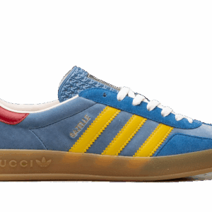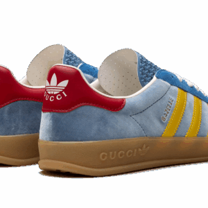 The Adidas Gazelle x Gucci Light Blue Suede is a luxurious fusion of sports and fashion. Featuring a light blue suede upper, iconic Gucci branding, and Adidas’ timeless Gazelle silhouette, this collaboration brings a chic and contemporary flair to a classic design, offering a standout piece for any wardrobe.