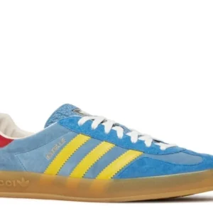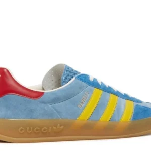 The Adidas Gazelle x Gucci Light Blue Suede is a luxurious fusion of sports and fashion. Featuring a light blue suede upper, iconic Gucci branding, and Adidas’ timeless Gazelle silhouette, this collaboration brings a chic and contemporary flair to a classic design, offering a standout piece for any wardrobe.