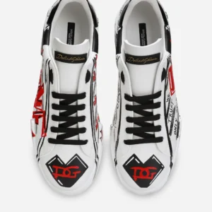 Portofino line sneakers in calfskin nappa with Dolce&Gabbana logo on the heel.