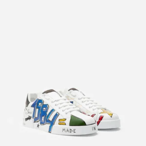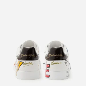 Portofino line sneakers in calfskin nappa with Dolce&Gabbana logo on the heel.