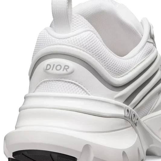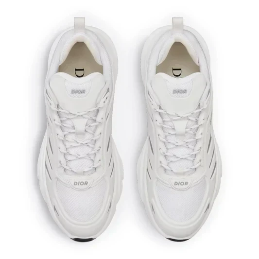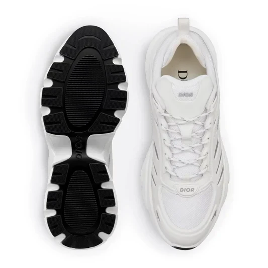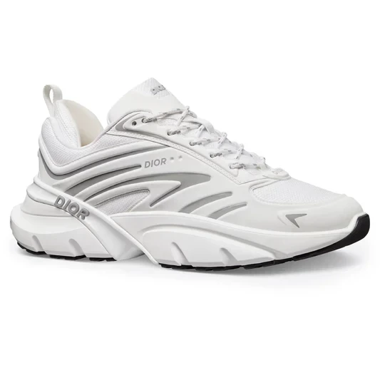 The Dior B44 Blade sneaker combines bold 2000s-inspired design with modern elegance. Tonal overlays and a sculpted Blade sole for a dynamic touch accent its white technical mesh upper. Dior branding on the upper, heel, and sides adds a signature finish, while two-tone laces and a sock-like fit ensure comfort and style. Perfect for upgrading casual looks with a contemporary edge.