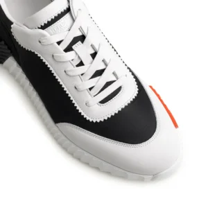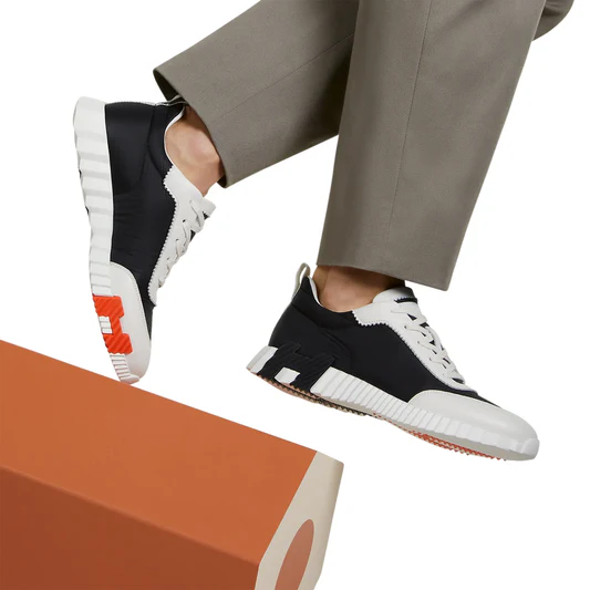 With their most recent release, the Hermès Paris Ripstop Bouncing Sneaker Black White isn’t slowing down. This time, it’s in a stunning black and white design with black on their iconic H. Crafted from Ripstop and calfskin leather, with branding on the heel and toe box, these shoes are the ideal complement to any person’s collection.