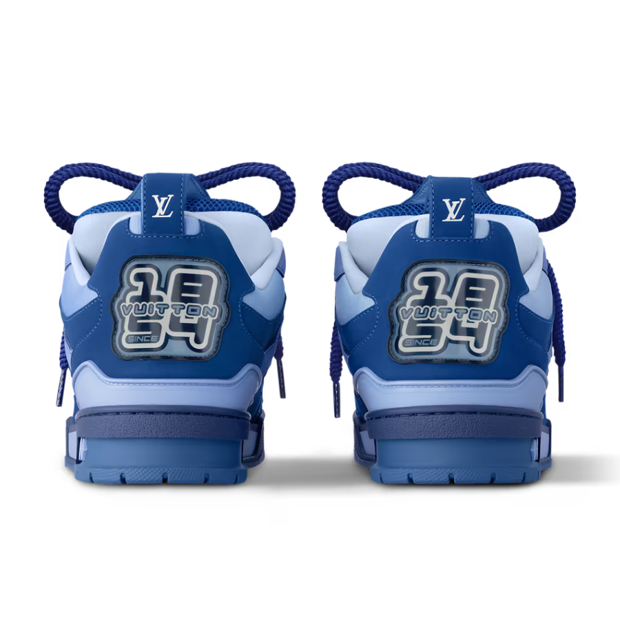 This colorblock version of the LV Skate sneaker comes in a mix of nubuck calf leather and technical mesh. Inspired by Nineties’ skate shoes, this model is notable for its thick double laces and exaggerated, padded collar and tongue. It has an oversized Monogram Flower on the side and an LV Vuitton logo on the tongue.