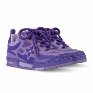 This colorblock version of the LV Skate sneaker comes in a mix of nubuck calf leather and technical mesh. Inspired by Nineties’ skate shoes, this model is notable for its thick double laces and exaggerated, padded collar and tongue. It has an oversized Monogram Flower on the side and an LV Vuitton logo on the tongue.