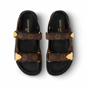 The comfortable LV Sunset sandals are made from the iconic Monogram Canvas material, combined with two easy-to-adjust straps. Prominent on the straps are accents engraved with the brand name and metal details inspired by the corners of the chest. The inner pad hugs the shape of the foot and the thin and lightweight rubber outsole makes it comfortable to move.