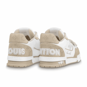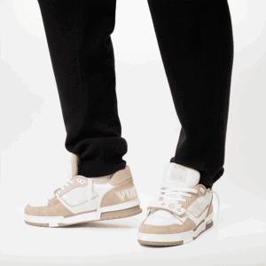 The Louis Vuitton LV Trainer ‘Beige’ is a sophisticated blend of luxury and streetwear, showcasing Louis Vuitton’s iconic craftsmanship. This sneaker features premium beige leather that exudes a timeless elegance, while the intricate stitching and embossed LV monogram add a touch of refinement. Designed by Virgil Abloh, the LV Trainer is both stylish and functional, offering a comfortable fit with its padded interior and durable rubber sole. Perfect for those who appreciate high-end fashion, this sneaker is a statement piece that elevates any outfit.