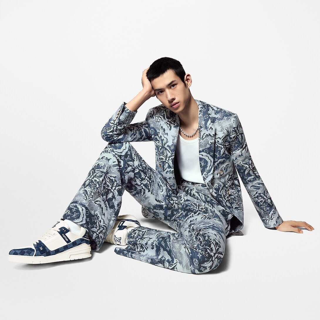 This edition of the LV Trainer sneaker pairs Damier denim with smooth calf leather. The combination of materials highlights this model’s elaborately constructed upper. Rubber signatures and a technical rubber outsole complete this cult design, which was originally created by Virgil Abloh.