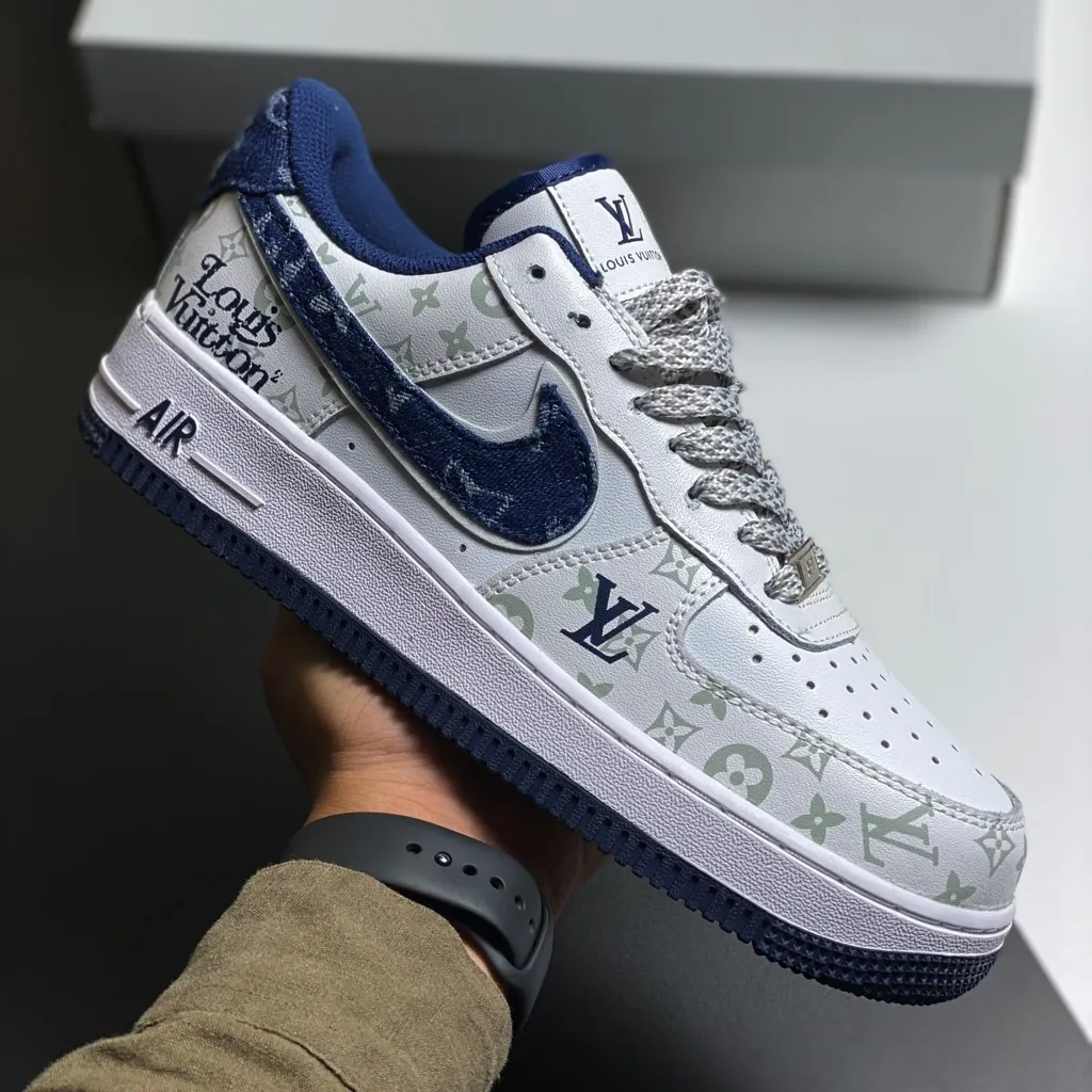 The LV x Nike Air Force 1 ’07 Low White Blue blends streetwear edge with high-fashion elegance. Designed by Virgil Abloh, this pair reimagines the iconic Air Force 1 silhouette with Louis Vuitton’s signature luxury craftsmanship.