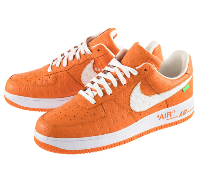 In total, Virgil Abloh designed 47 pairs of the Nike “Air Force 1” for the Louis Vuitton show in collaboration with Nike. To distinguish them from the original Nike “Air Force 1″, the sneakers were made with materials employed in Abloh’s Louis Vuitton men’s collections, and were styled with his signature quotation marks, echoing the written graphics Abloh used to adorn the shoes. The individual styles designed for the show were made by Louis Vuitton in its shoe atelier in Fiesso d’Artico, Venice. In January 2022, the first installment of the Louis Vuitton x Nike “Air Force 1” by Virgil Abloh came to market through Sotheby’s exclusively at auction.