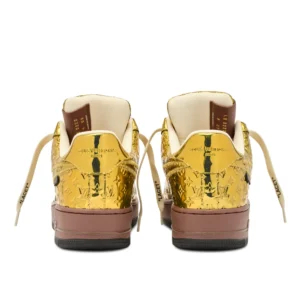 The Louis Vuitton x Nike Air Force 1 “Gold” stands as a true fashion icon, merging the worlds of high-end luxury and modern streetwear. This design is part of the historic collaboration celebrating the 40th anniversary of the iconic Nike Air Force 1, reimagined through the visionary lens of Virgil Abloh. First unveiled during Louis Vuitton’s Men’s Spring-Summer 2022 collection, the sneaker embodies the rich legacy of the Air Force 1 while pushing the boundaries of craftsmanship and design.