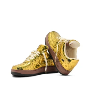 Beyond its striking design, the Louis Vuitton x Nike Air Force 1 “Gold” is built for durability and comfort. From its supple materials to the refined stitching, every detail is executed with the utmost care, ensuring a product that feels as luxurious as it looks. Whether on display or worn, this sneaker makes a bold statement of style and quality.