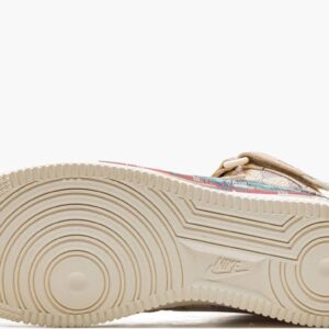 The Louis Vuitton x Nike Air Force 1 Mid “Graffiti” features a leather upper with a beige and brown checkerboard pattern. Its design stands out thanks to the multicoloured graffiti on the quarter panel – a work of the artist Ghusto Leone. This high-top sneaker is secured by a side touch strap at the ankle and is finished by a cream rubber sole.