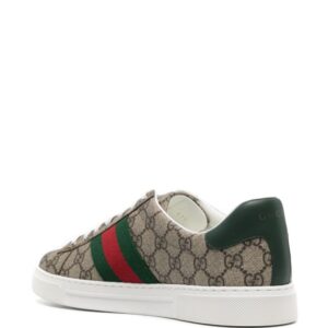 Inspired by the summer spirit and beach clubs on the Italian coast, this item is part of Gucci Lido. Since its debut, the Ace sneaker has become a mainstay of the House's narrative. A new version of the characteristic low-top silhouette is presented in the latest collection, featuring unique details. A chunkier construction defines the shape, while a metal “ACE” tag shines on the lace-up closure. Gucci's distinctive Web stripe completes the style.