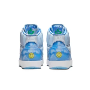 The Air Jordan 2 Retro gets a colorful makeover by Colombian reggaeton artist J Balvin. The upper is crafted with powder blue ripstop material and grey suede accented by multicolor stitching, while an all-over graphic featuring cloudy blue skies can be seen on the heel counter and interior lining. J Balvin’s signature smiley face graphic is affixed on the back heel, while the Wings logo on the tongue has a glow-in-the-dark finish. A contrasting white midsole leads to a translucent outsole, while encapsulated Nike Air offers lightweight cushioning.
