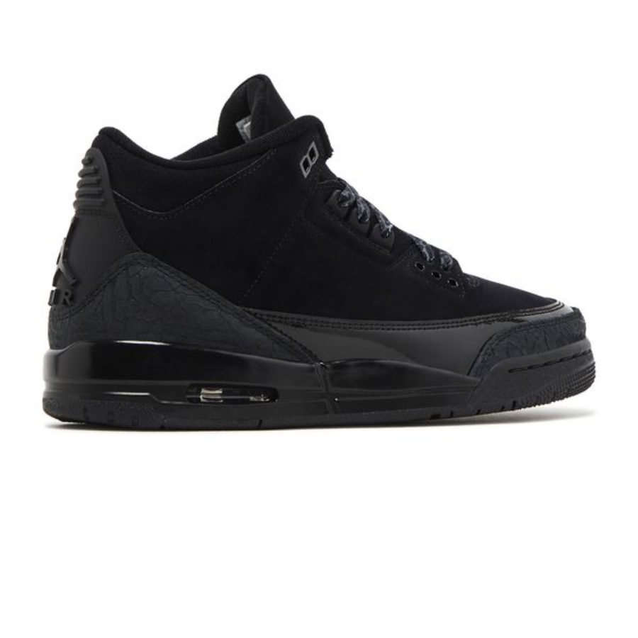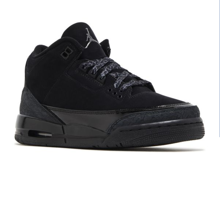Phiên bản Air Jordan 3 Retro GS ‘Black Cat’ năm 2025 sử dụng chất liệu nubuck đen ở phần thân giày, kết hợp với lớp chắn bùn bằng da bóng và tạo điểm nhấn tương phản với lớp phủ họa tiết voi màu than ở phần mũi giày và gót giày. Biểu tượng Jumpman được trang trí ở lưỡi gà và phần gót giày đúc nguyên khối, giữ nguyên vẻ ngoài đặc trưng. Đế giữa bằng bọt xốp màu đen đồng bộ được hoàn thiện bóng bẩy, kết hợp với đế giày Air-sole cho cảm giác đàn hồi tốt.