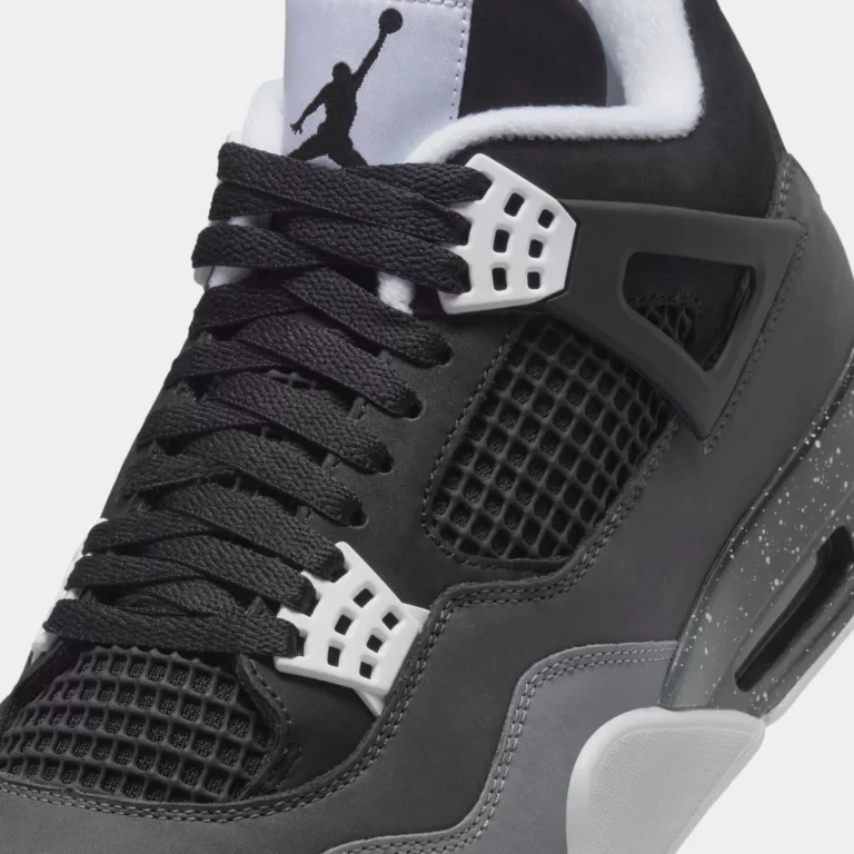 The 2024 edition of the Air Jordan 4 Retro ‘Fear’ brings back the 2013 colorway, using a nubuck upper accented with a grey mudguard and toe wrap. White molded eyelets match the Jumpman logos on the tongue tag and heel. White speckles decorate the a black foam midsole, which packs an exposed Air-Sole heel unit.
