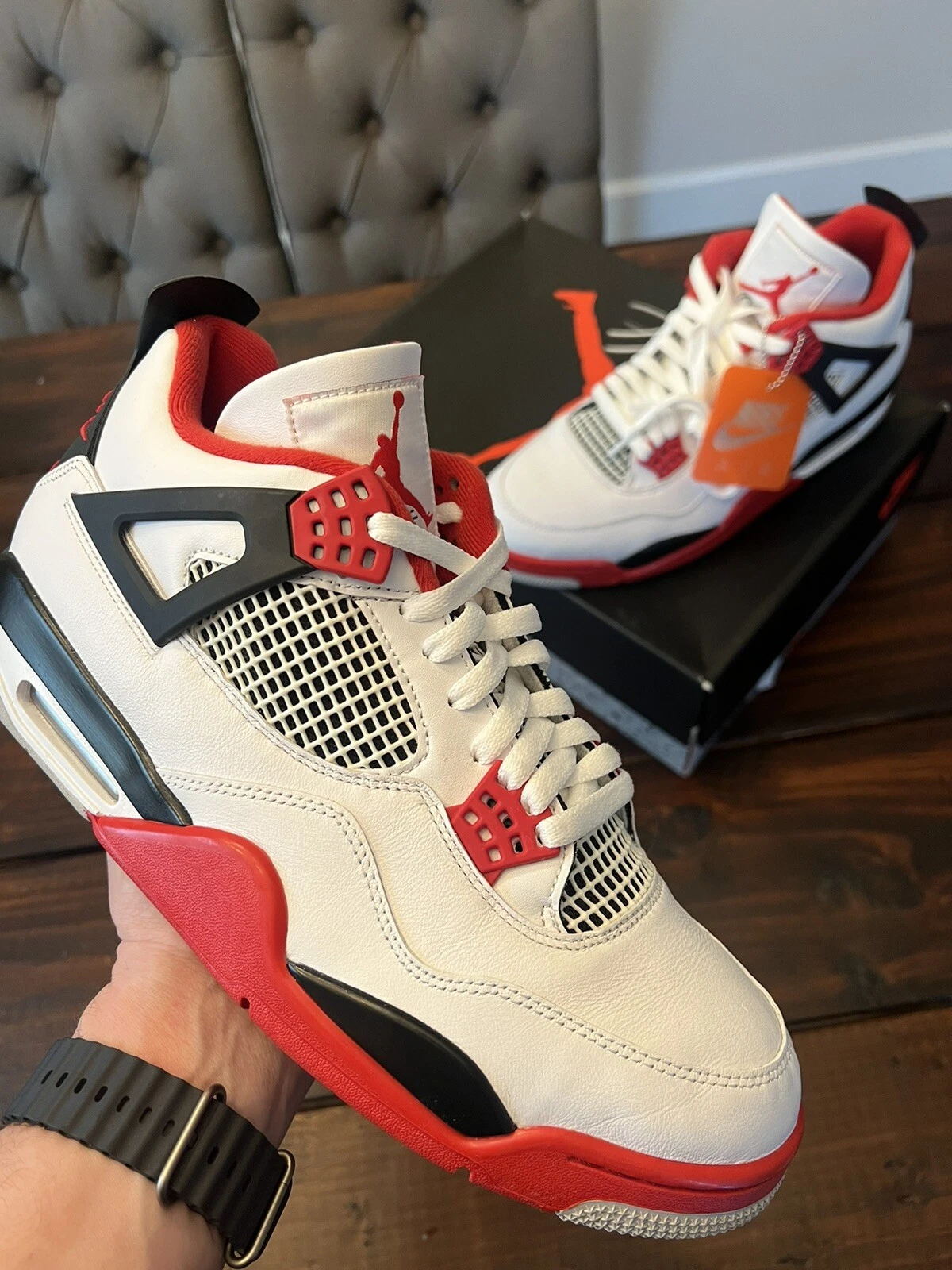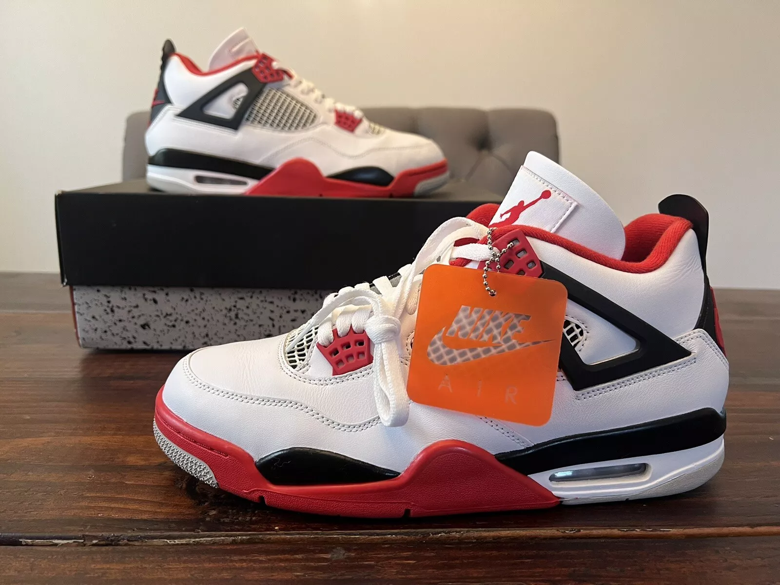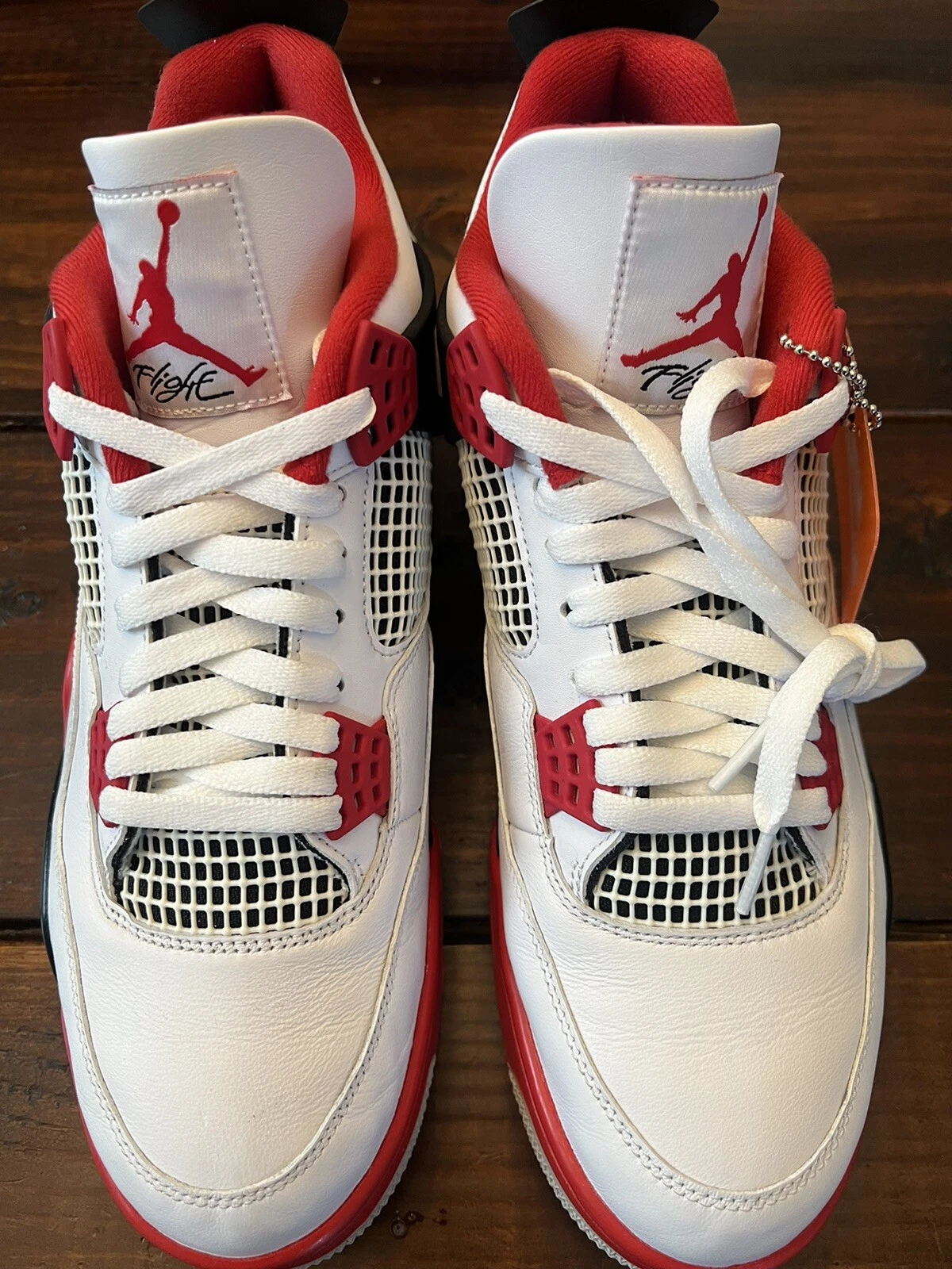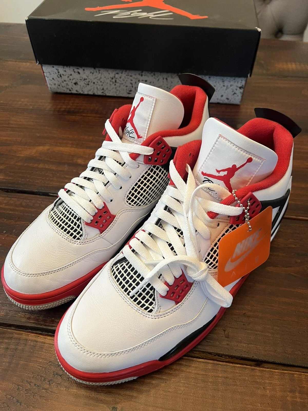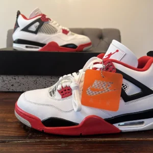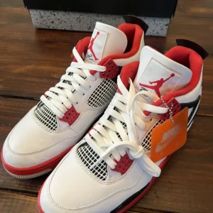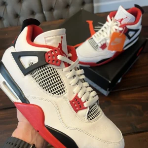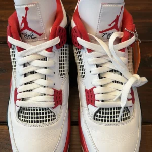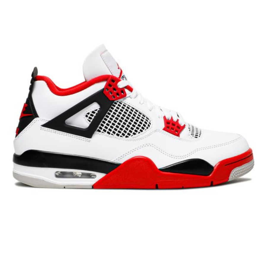The Air Jordan 4 Retro OG ‘Fire Red’ 2020 released in 2020, bringing back the OG colorway of the silhouette. The shoe’s upper is built with white leather, accented by hits of Fire Red throughout, including the signature eyelets. Underfoot, the midsole houses visible Air in the heel for cushioning, while a Nike Air logo on the heel completes the throwback look.