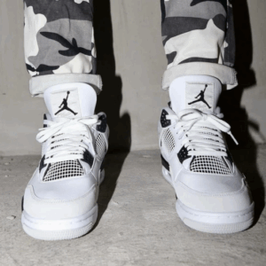 Inspired by the widely recognized “Military Blue” Air Jordan 4 that first released in 1989, this modern iteration swaps the blue for black accents. Similar to its inspiration, the shoe also features a predominantly white leather upper complemented by light grey accents on the suede mudguard and lacing cage. Elsewhere, Jumpman branding takes up the usual spots on the tongue and heel logos. Rounding it all out is a crisp white Nike Air midsole for all-day comfort.