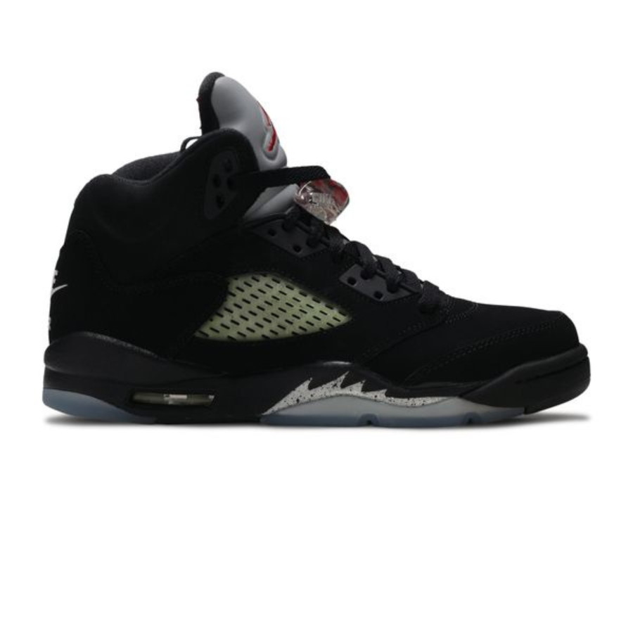 One of four OG colorways of the Jordan 5, the Air Jordan 5 OG BG ‘Black Metallic’ 2016 is a remaster that stays true to the original. Releasing in boys’ and girls’ sizes, the shoe features a black nubuck upper, reflective 3M tongue and speckled silver shark tooth detailing. Hits of University Red mark the tongue branding and lace lock, while the outsole’s icy blue look brings the only minor change from the 1990 model before it.