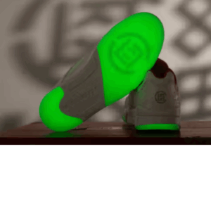 The pair’s upper predominantly features shiny white layers of CLOT’s iconic SILK ROYALE pattern, accented by red laces, a silk red liner and jade-inspired details. Other stand-out elements include jade-colored co-branding at the heels, glow-in-the-dark green outsoles and co-branded insoles.