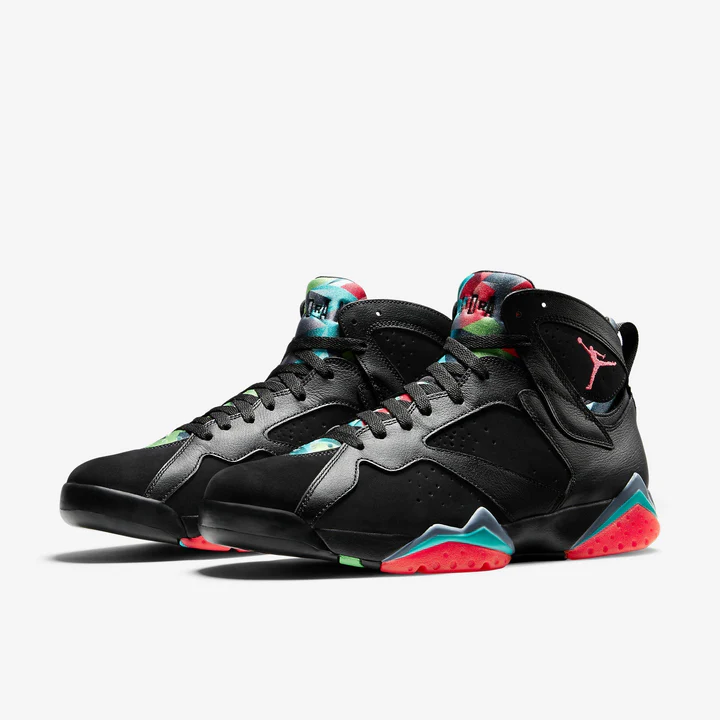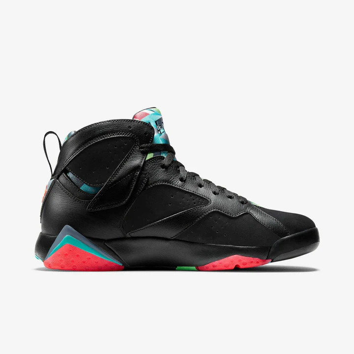 The Air Jordan 7 Retro 30th ‘Barcelona Nights’ celebrates the silhouette’s historic significance, as the shoe was worn by MJ at the ’92 Summer Olympics as a member of the vaunted Dream Team. The venue for those games was Barcelona, and the picturesque view of the city at night is the inspiration for this special-edition colorway, highlighted by bright accents on a black nubuck and leather upper.