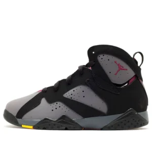 The 2011 Air Jordan 7 Retro ‘Bordeaux’ offers a version of the 1992 OG colorway. Worn during the 1992 NBA All-Star Game by Michael Jordan, the ‘Bordeaux’ was also worn in Jordan’s appearance in Michael Jackson’s music video for ‘Jam.’ The sneaker features a suede upper black and light graphite with Bordeaux accents and a midsole of light graphite.