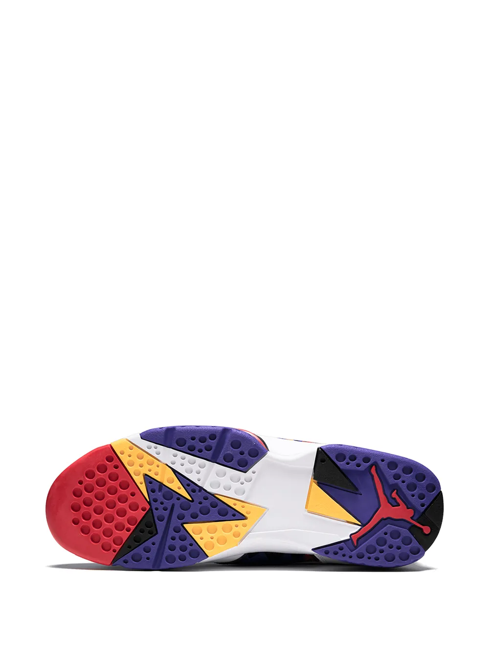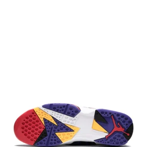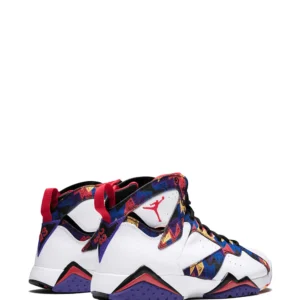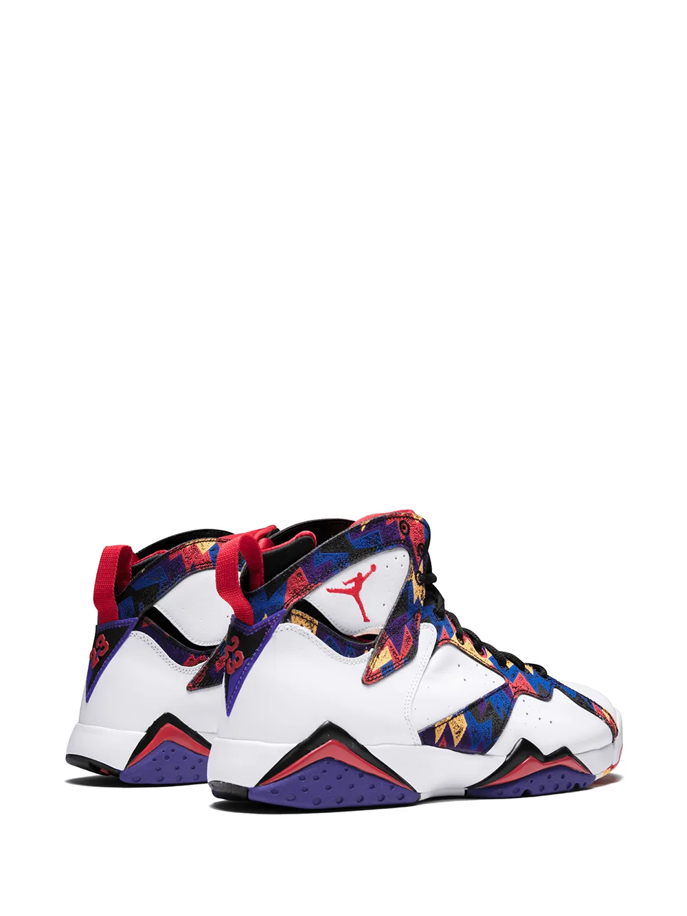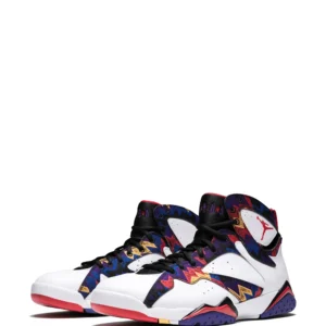 The Air Jordan 7 Retro ‘Sweater’ draws inspiration from an outfit worn by Michael Jordan at the 1992 Barcelona Summer Olympics and in a 1993 McDonald’s Super Bowl commercial with Larry Bird. Also known as the ‘Nothing But Net,’ the 2015 release combines a vibrant graphic design with upper white leather, black, University Red, and Bright Concord tongue, heel, and outsole accents.