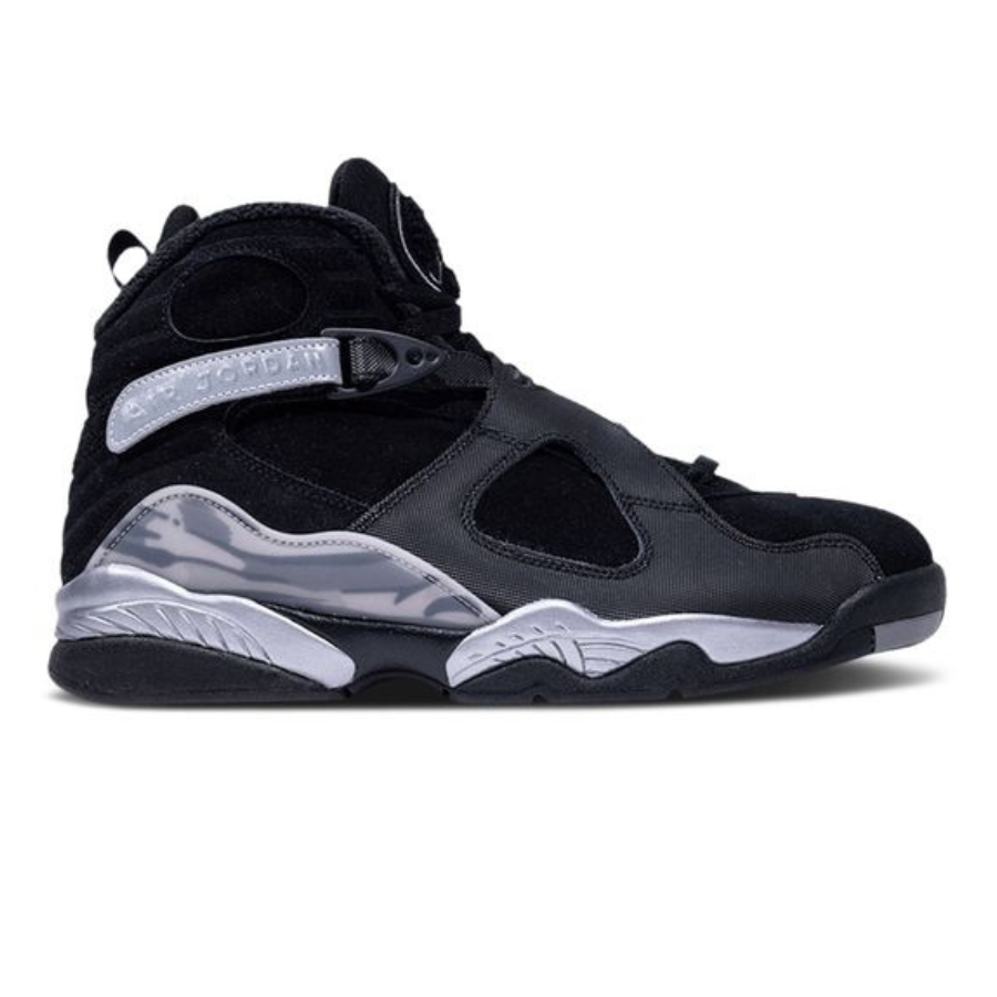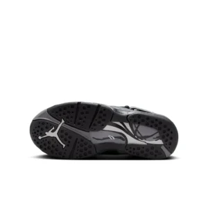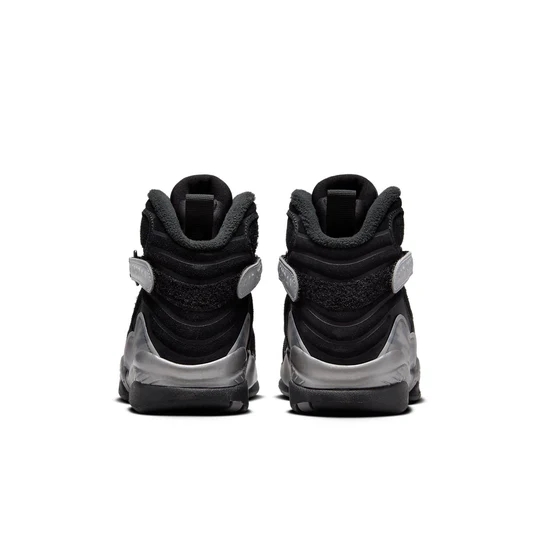 In honor of its 30th anniversary, the Air Jordan 8 Retro Winterized ‘Gunsmoke’ features a redesigned construction ready for inclement weather. The water-resistant upper in black nubuck is fastened with synthetic black cross straps. The thick collar lining offers a cozy fit. The tongue is adorned with a chenille Jumpman patch while the reflective silver side straps display embossed ‘Air Jordan’ branding. A PU midsole in black and metallic silver incorporates encapsulated Air-sole cushioning in both the forefoot and heel for added comfort.