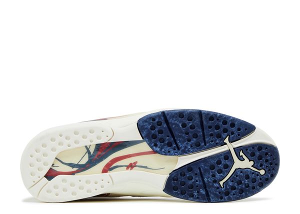Memories of championship gold come to life in the SoleFly x Air Jordan 8 Retro ‘Mi Casa Es Su Casa’. Spotlighting Cuban heritage with an insole pattern that resembles Cuban tile and mesh side panels that look like Cuban upholstery, these shoes have vivid orange accents to liven up the look. The cross-straps feature mismatched ’23’ and ‘SF’ logos on top, while the phrase ‘Mi casa, su casa’ are hidden underneath.