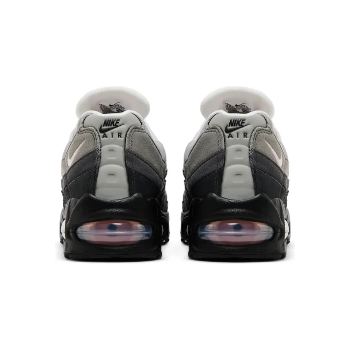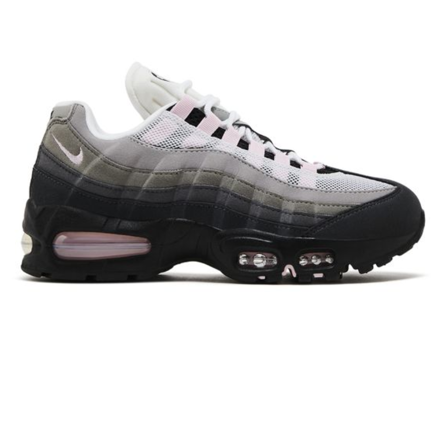 The 2025 edition of the Nike Women’s Air Max 95 OG ‘Pink Foam’ rocks a black foam midsole tooled with pink Max Air units for a lightweight feel underfoot. The wavy suede overlays on the side panels go from light grey to charcoal. Soft pink pops land on the webbed eyelets, Air Max tongue, the Swoosh and the Nike Air logo on the reflective heel panel