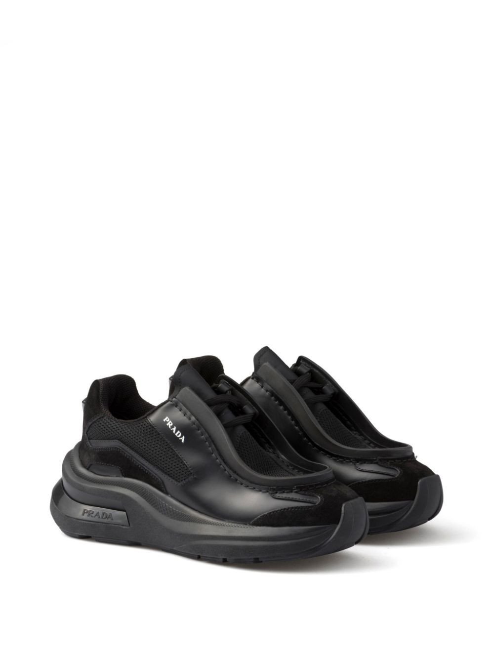 Prada Logo Print Panelled Sneakers