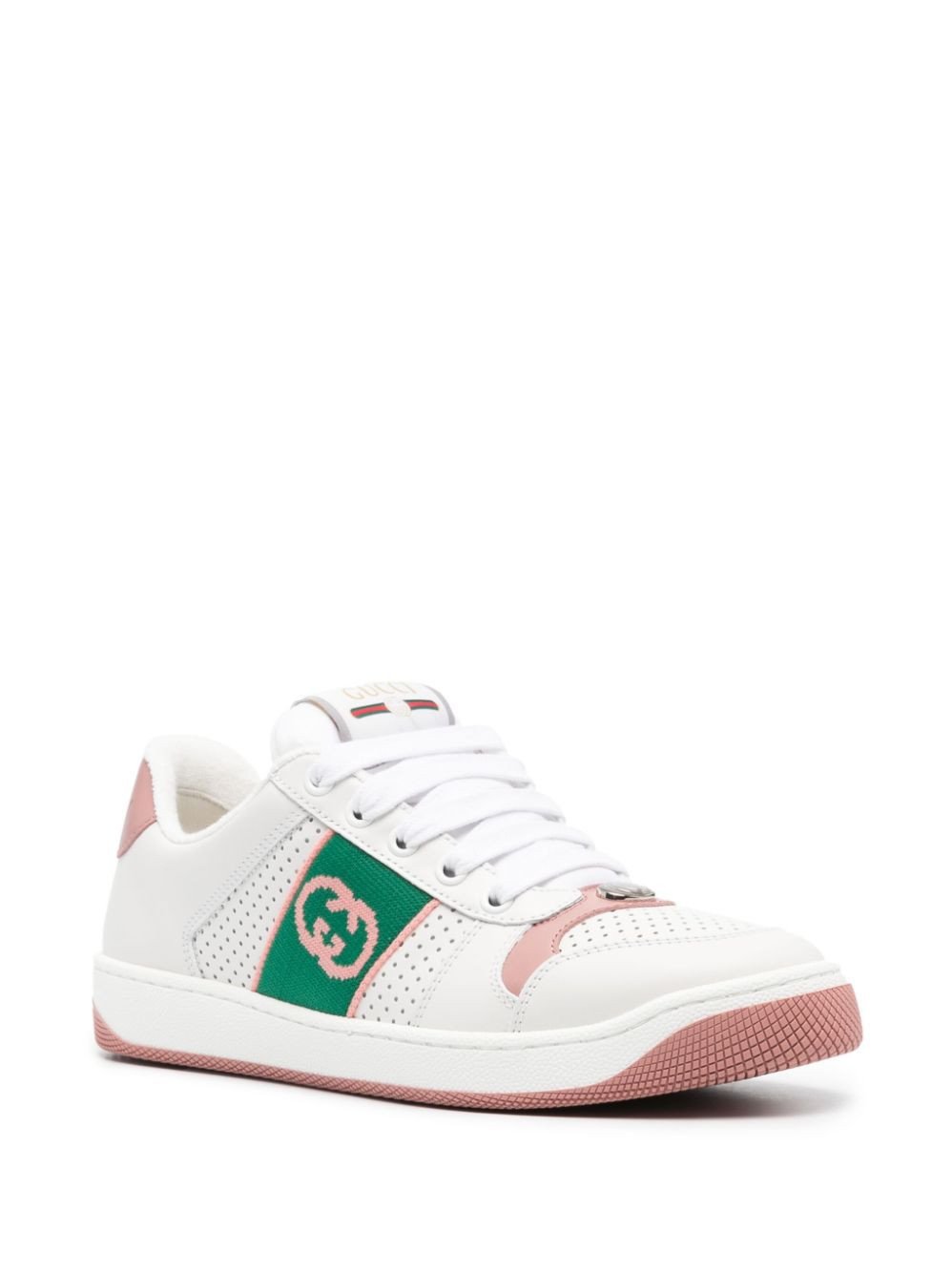 Gucci's Screener sneakers are inspired by 1970s styles. Made from smooth leather, this low-top pair is decorated with two brand signatures – note the interlocking G logo and Web stripes.